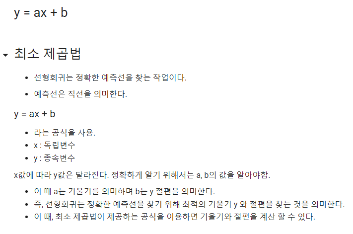 - 정확한 기울기 a와 정확한 y 절편의 값 b를 알아내는 간단한 방법