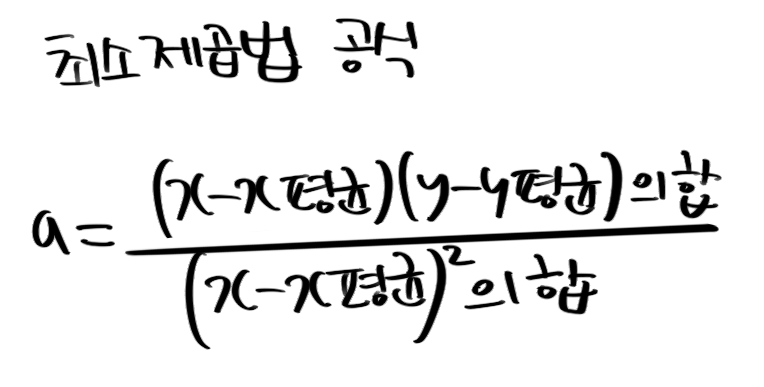 # b = y 의 평균 - ( x 의 평균 * 기울기 a)